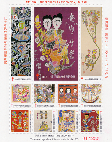 洪通,台南縣南鯤鯓人,自幼及長生活困頓,至50歲生日,突然狂熱的投入繪畫,無師自通,其畫作色彩縯紛,童趣橫溢,自創風格,係台灣近代傳奇畫家。
