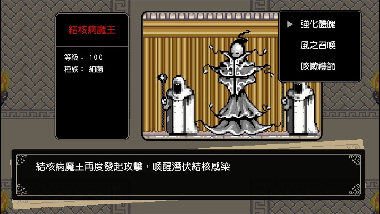 這是款吸引人的衛生教育電玩遊戲影片,透過模擬遊戲互動過程,獲得正確的結核病防治知識。