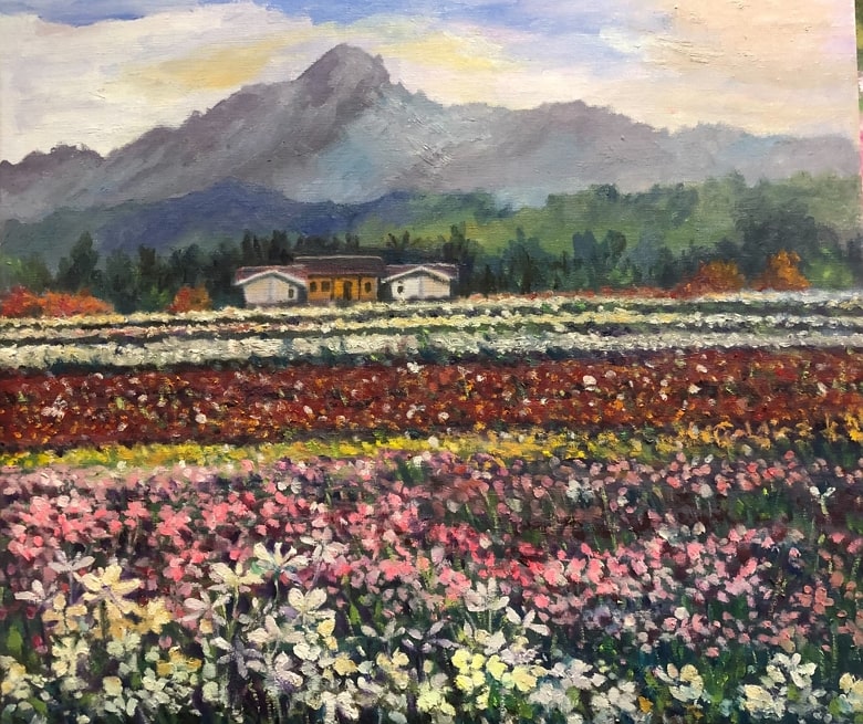創作者林慧怜老師,從事教職二十八年,自幼喜愛文學藝術,常依山傍水寫生,關心人類健康與環境保育的問題,憑藉著對自然的熱情,紀錄生命中各式各樣的感動,以藝術家對真善美的認知,畫下對土地萬物的情誼!