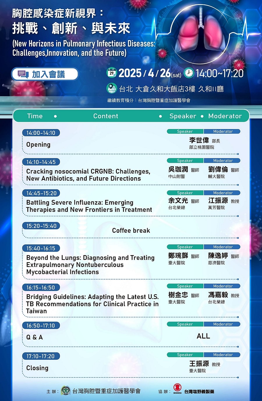 114年04月26日(星期六) 胸腔感染症新視界:挑戰、創新、與未來