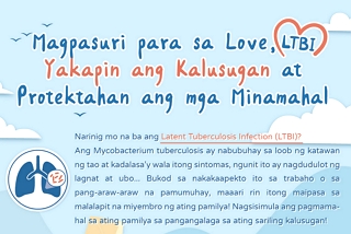 外籍配偶族群專屬,參加潛伏結核感染檢驗與治療健康方案好處多。(新增)菲律賓語文宣,宣傳海報:「為愛檢驗LTBI 擁抱健康守護愛」。折頁文宣:「愛的3招,輕鬆保護家人」